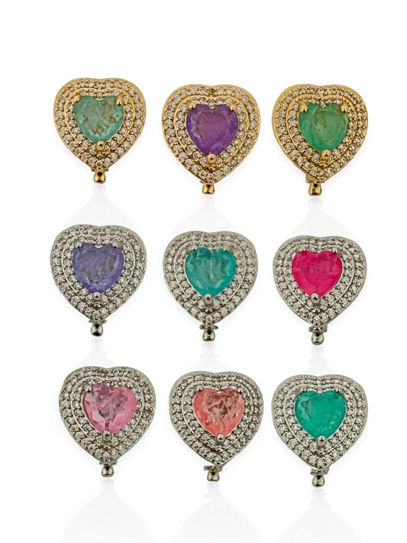 Charm Folheado a Ouro 18K Coração Cravejado Com Zircônia em Volta – Ouro/Verde